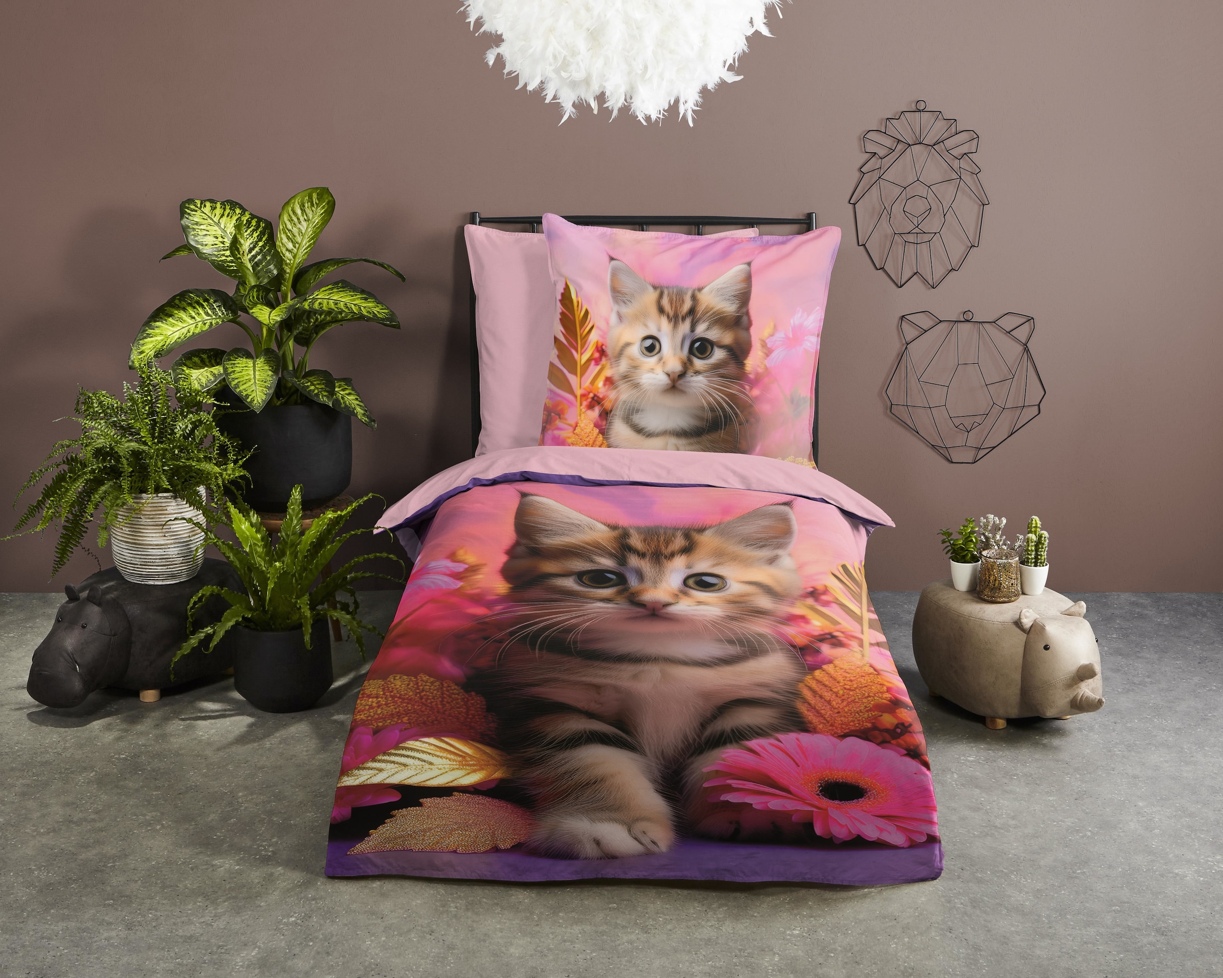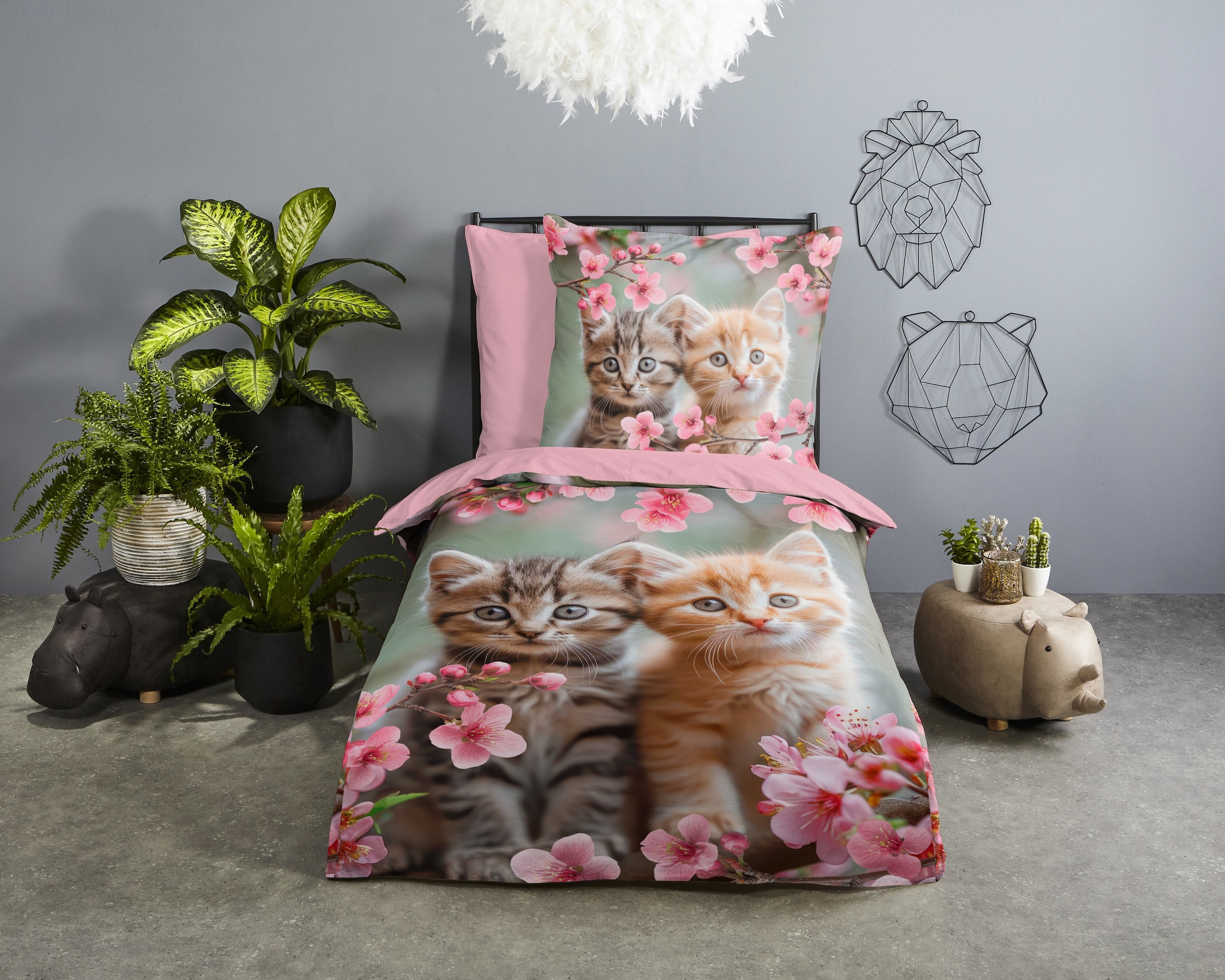 - Kinderbettwäsche »Mischa« 2 Baumwolle, Renforcé, Wendeoptik, Kind, Mädchen, Katze, Blumegood morningAktueller Preis44,95 €