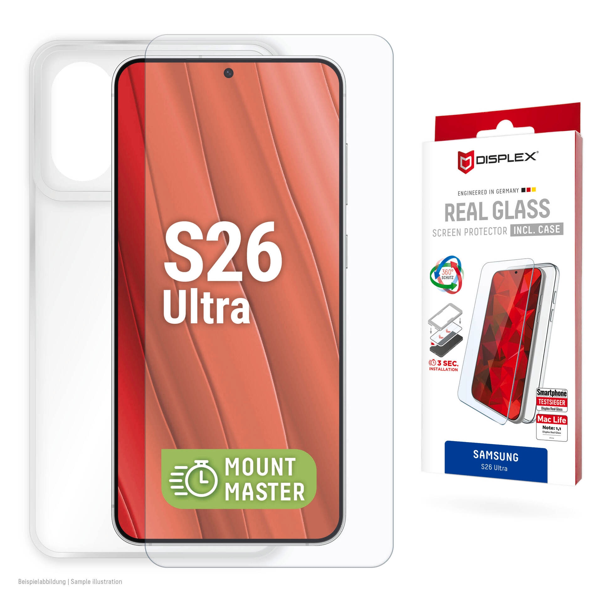 - Displayschutzglas »Real Glass Screen Protector mit MountMaster« für Samsung Galaxy S26...Displex