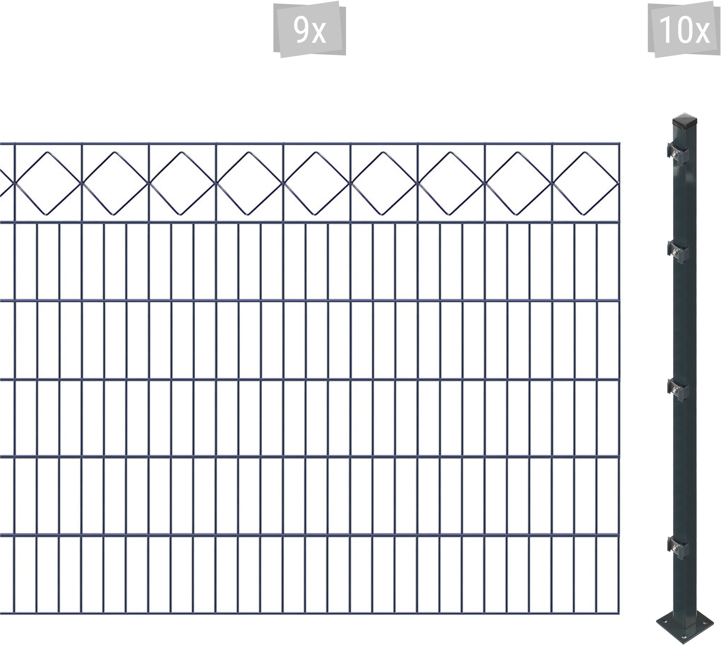 - 10 Doppelstab-Zaunmatten mit je 201 x 83 cm, 11 Zaunpfosten