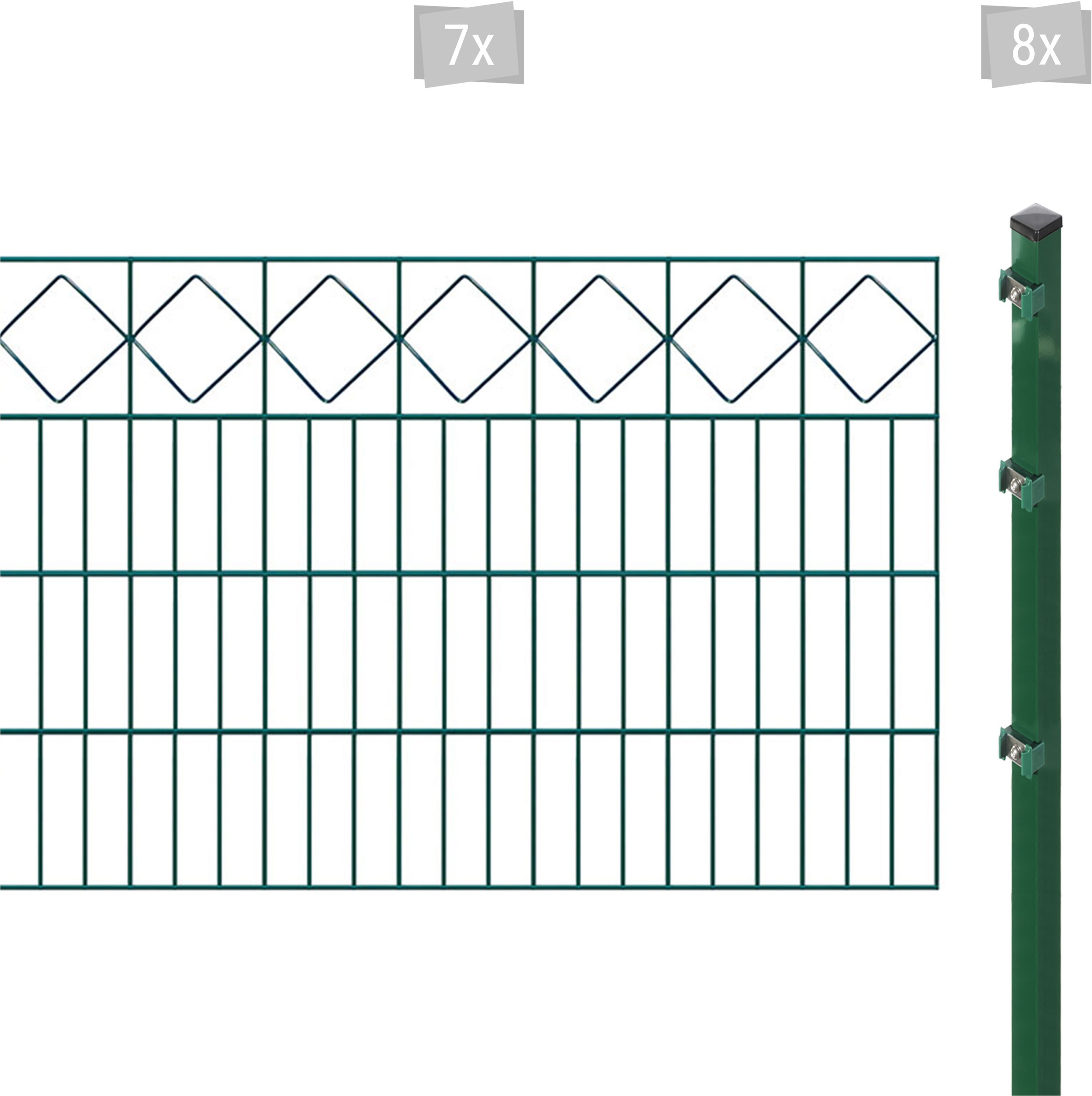 - 5 Zaunelemente je 83x200 cm, 6 Pfosten, RAL 6005 grün