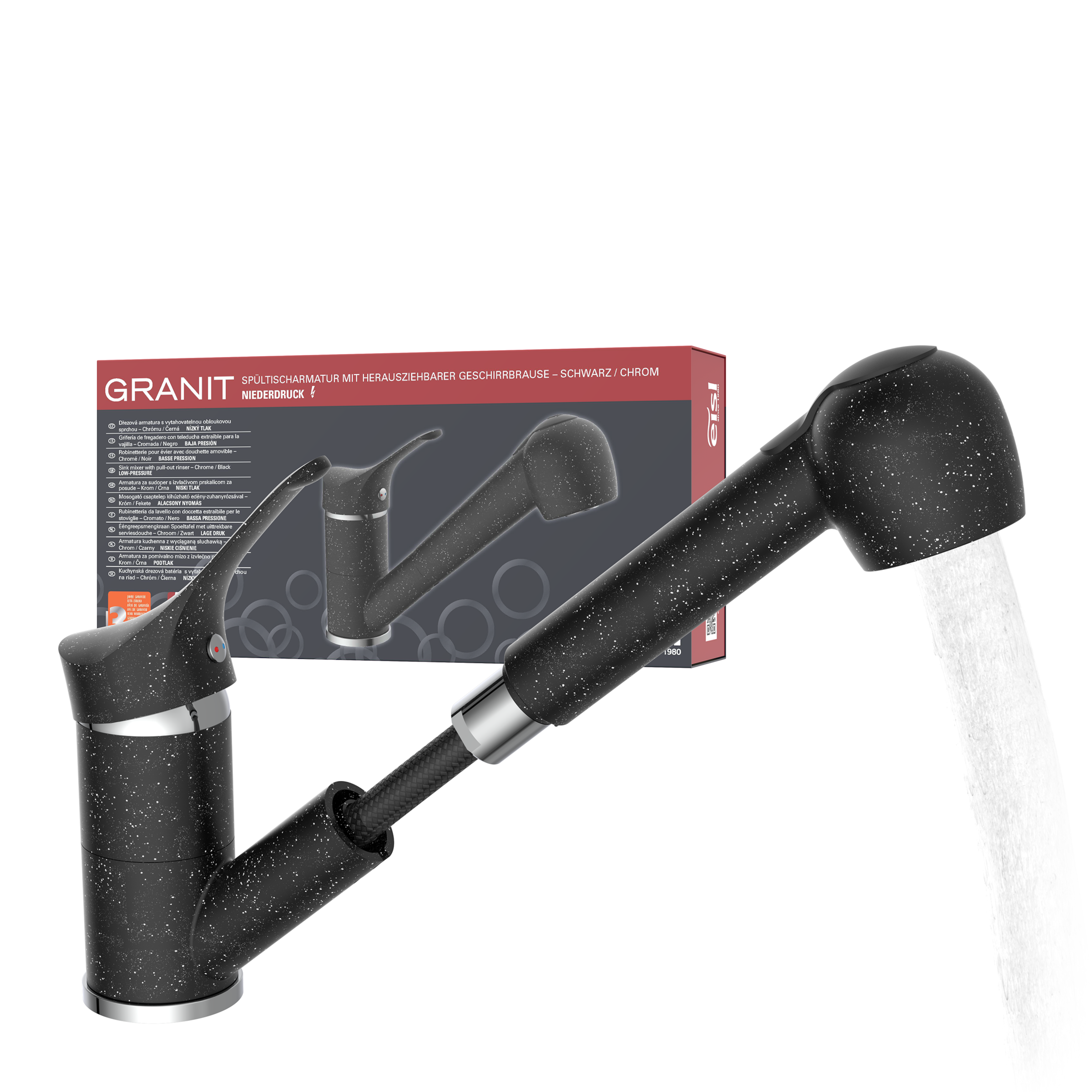 - Spültischarmatur »GRANIT« Niederdruck, herausziehb., 2-fach verstellb., 90° schwenkbarEislUrsprünglicher PreisUVP 119,99 €Rabatt- 18 %Aktueller Preis98,39 €