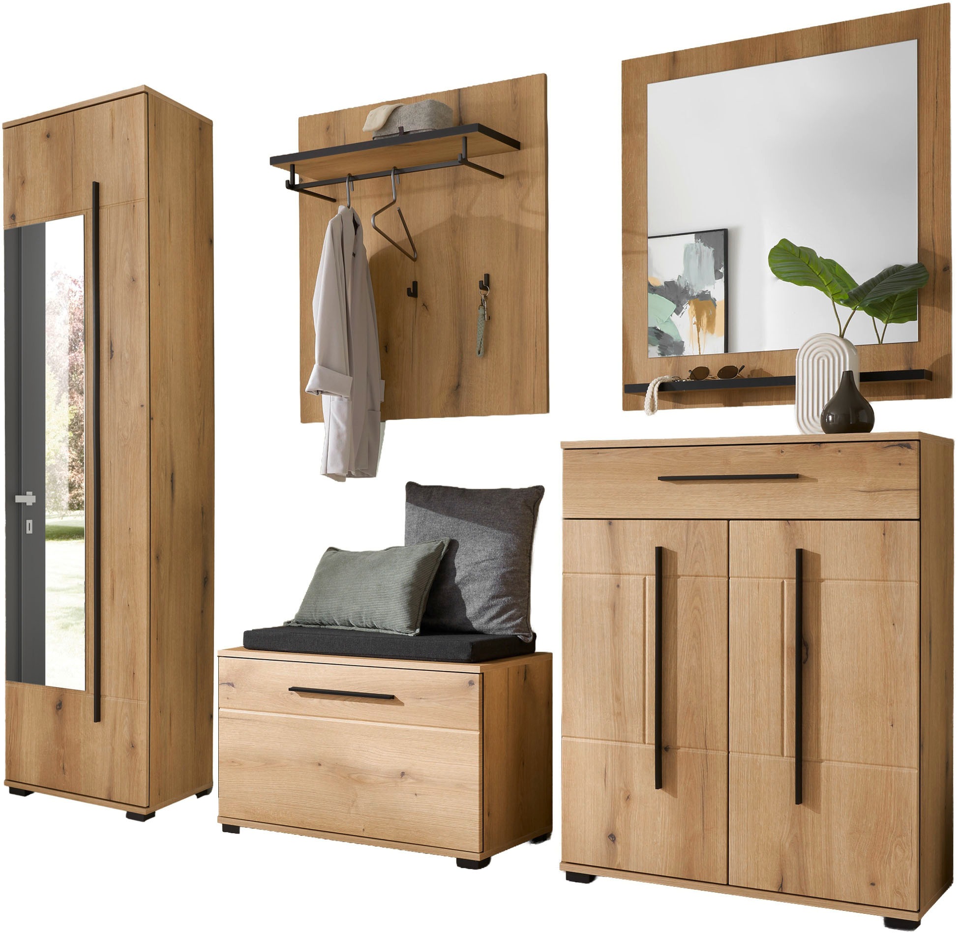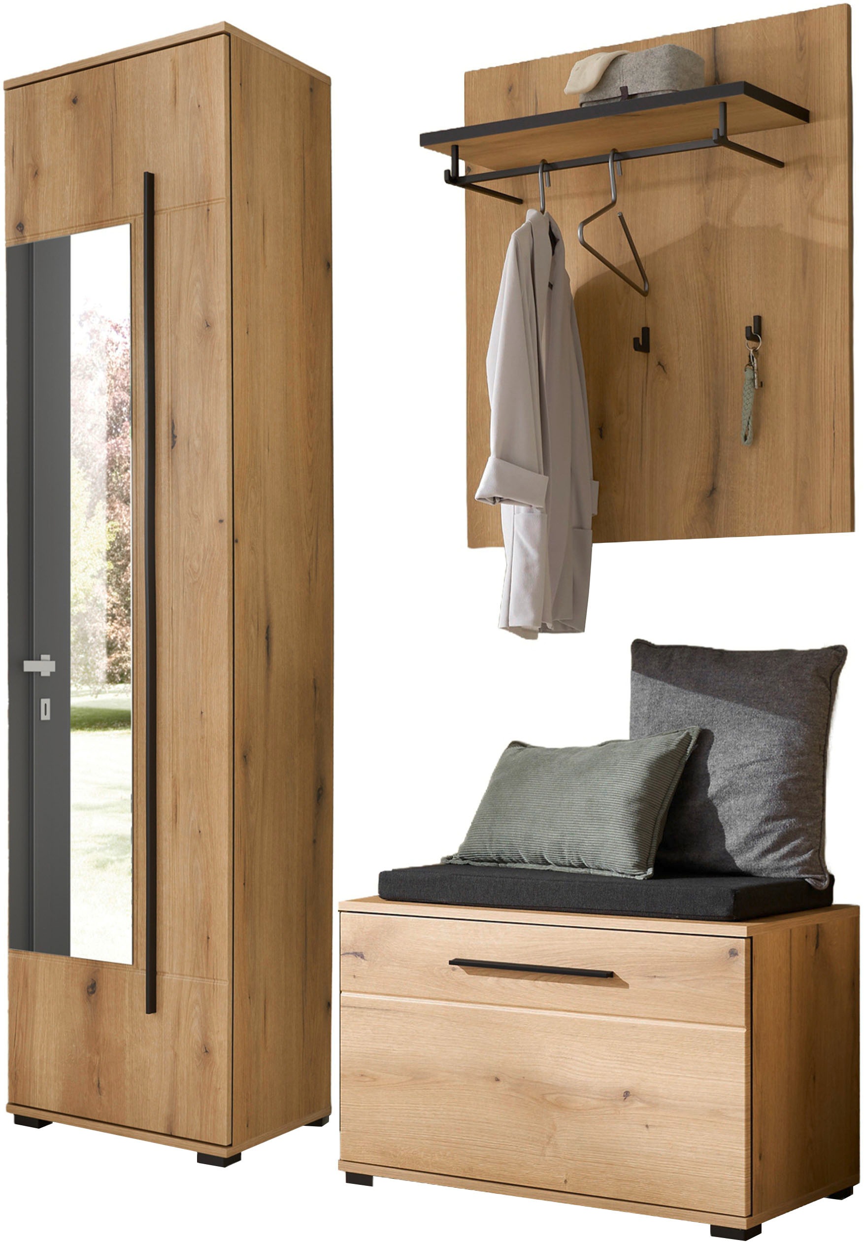 + Farben - Kompaktgarderobe »Oak Squere« B/H/T 108,4 /195,9/41,7 cm Spiegel, Haken, KleiderstangeFORTEUrsprünglicher PreisUVP 539,00 €Rabatt- 217,07 €Aktueller Preis321,93 €
