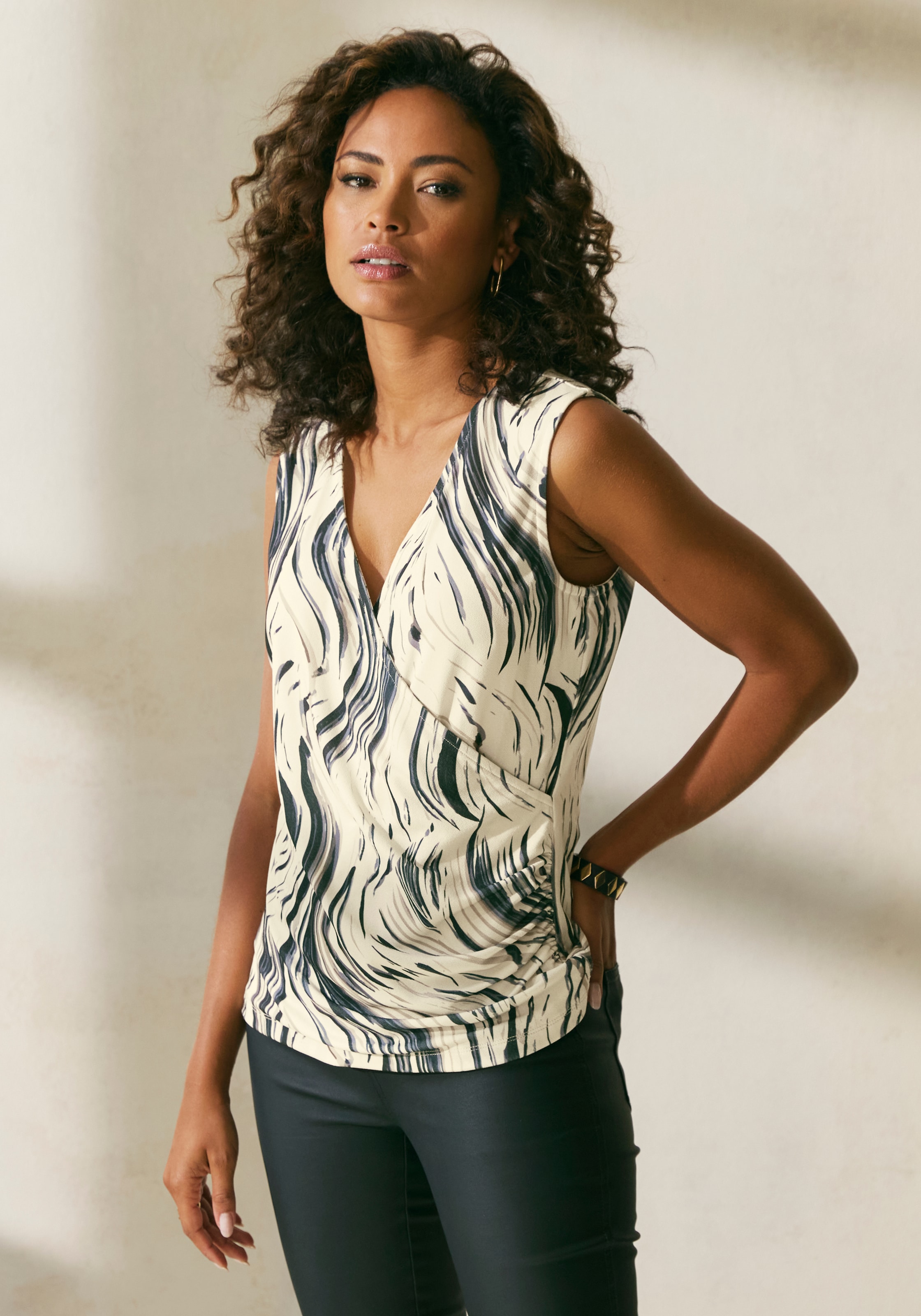- Tanktop in Wickeloptik, Blusentop mit Alloverdruck und seitlicher RaffungLASCANAUrsprünglicher PreisUVP 29,99 €Rabatt- 33 %Aktueller Preisab 19,99 €