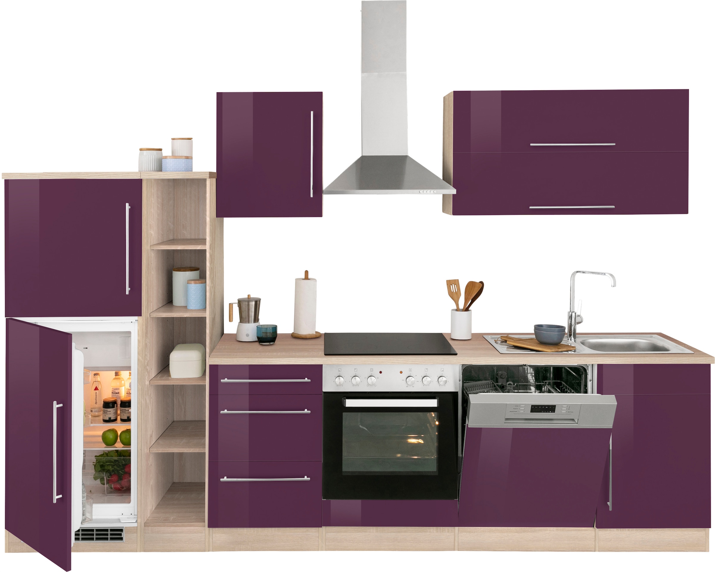 - OPTIFITKüchenzeile »Kalmar« Breite 300 cm, wahlweise mit E-Geräten, mit Arbeitsplatte