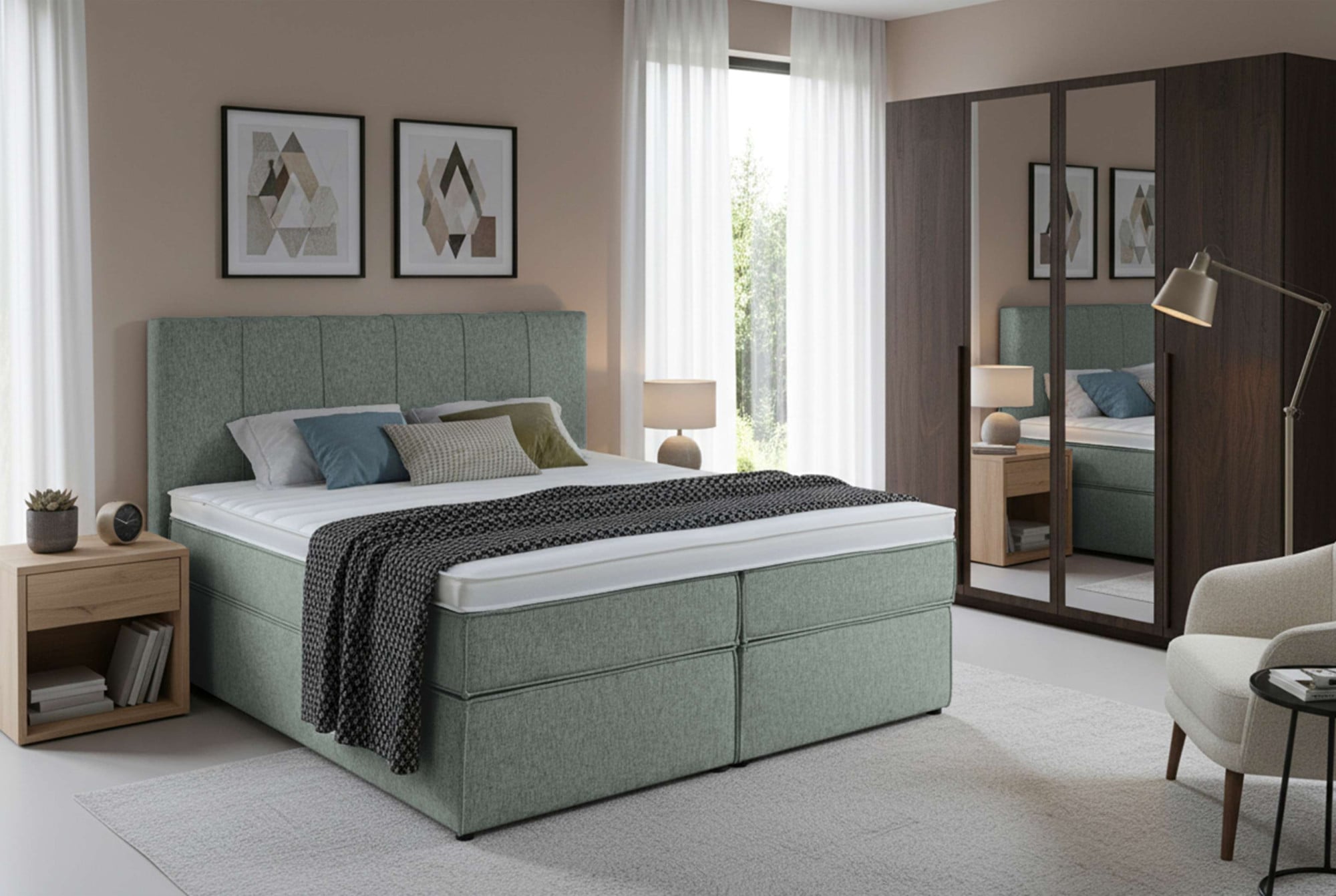 - Boxspringbett »Alina« mit Tonnentaschenfederkern-Matratze, 100% vegangrüne bettenUrsprünglicher PreisUVP 1.899,00 €Rabatt- 399,01 €Aktueller Preisab 1.499,99 €
