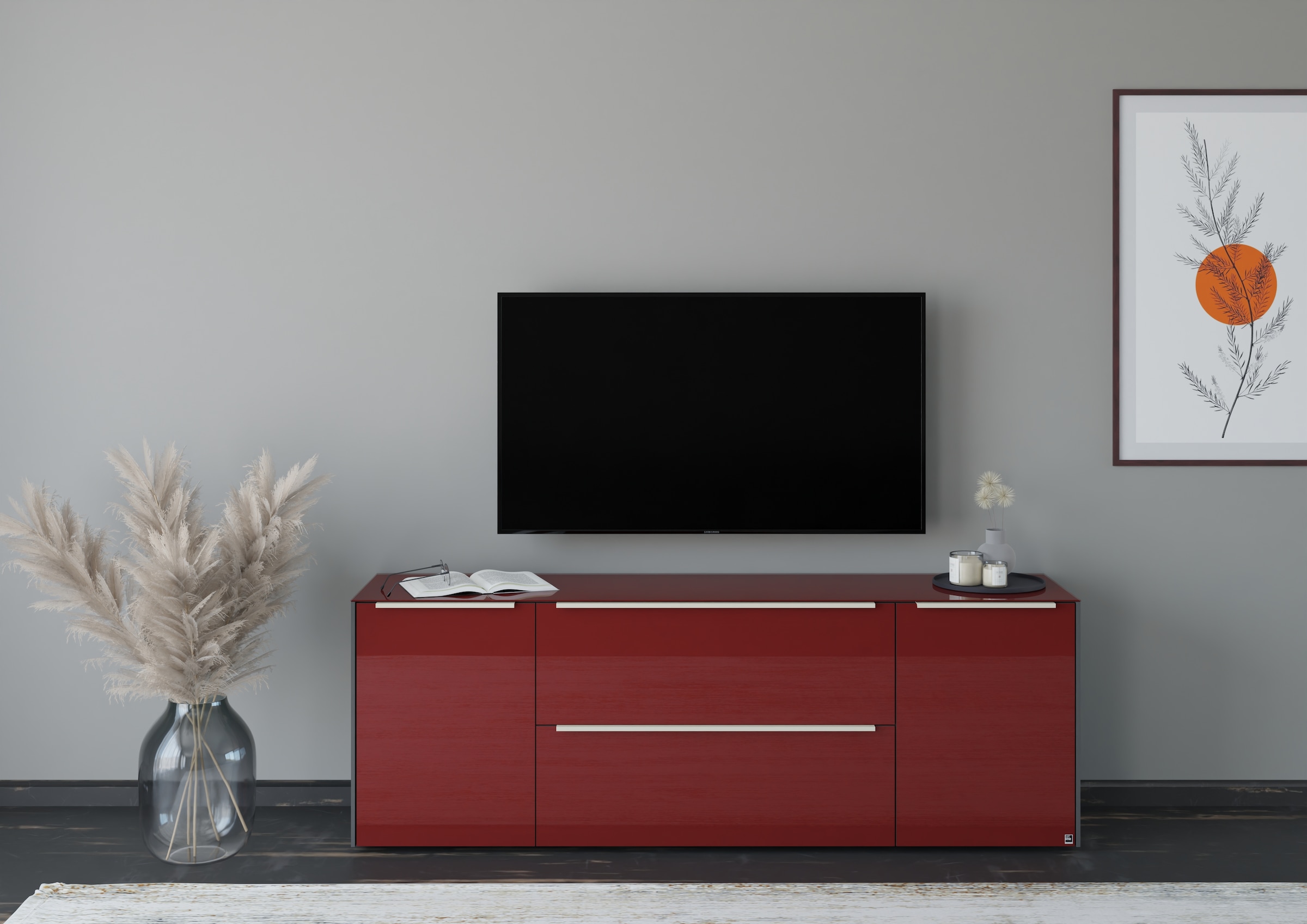 Lowboards kannst du hängend direkt an die Wand schrauben – so wirkt das Möbel fast wie ein exquisites Ausstellungsstück. Im Onlineshop erhältst du Hänge-Lowboards in unterschiedlicher Breite, sodass du deine Wand ganz individuell damit gestaltest. Du kannst verschiedene Lowboards miteinander kombinieren oder das Ensemble um weitere Möbel ergänzen.
