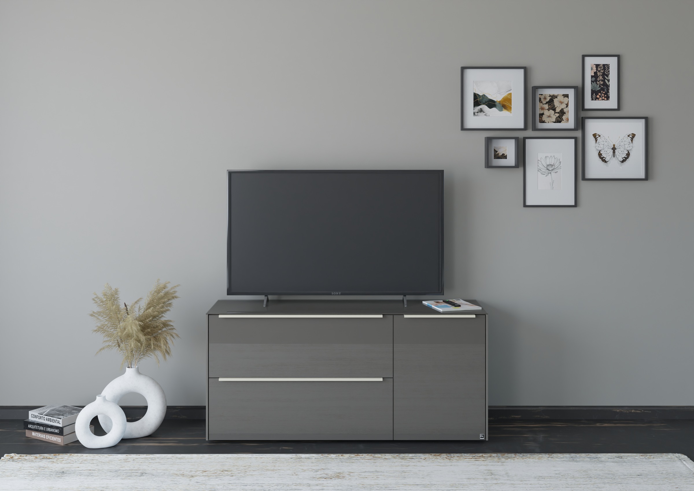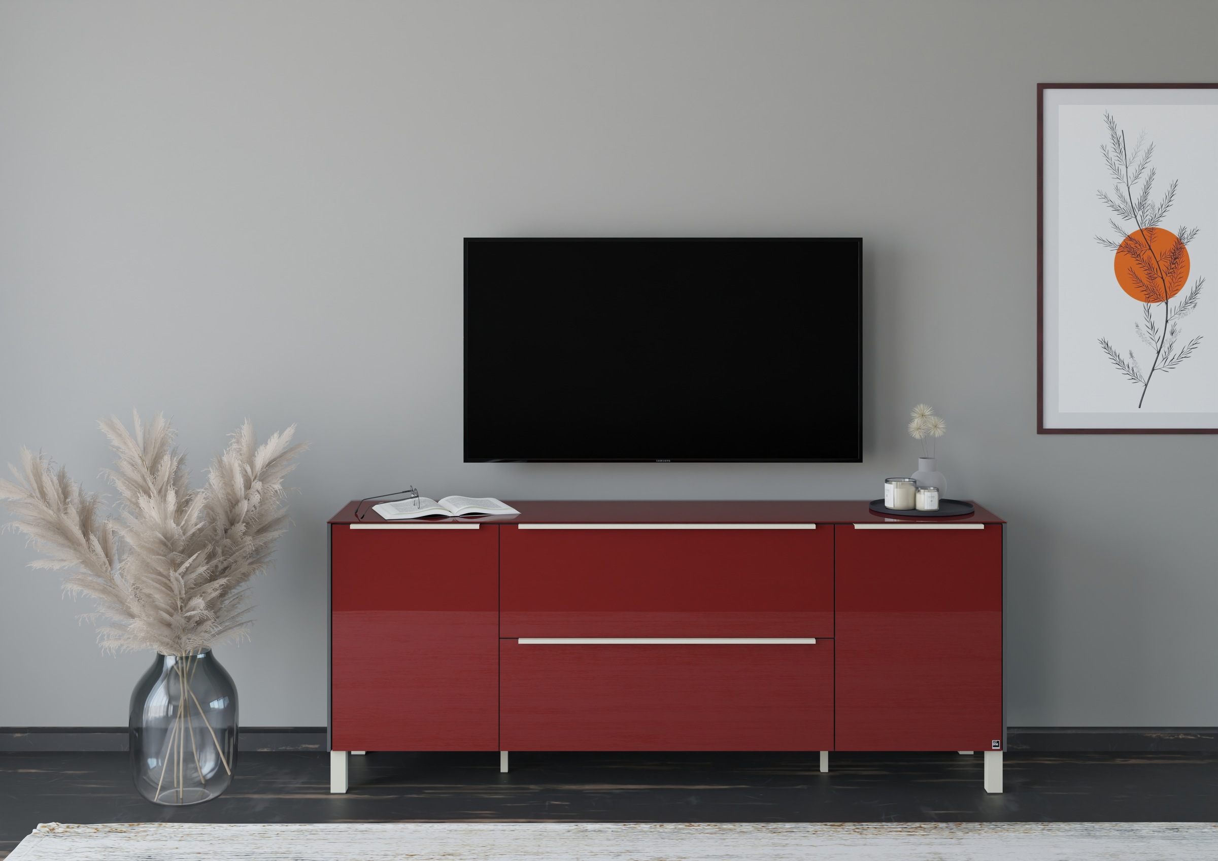 Lowboards kannst du hängend direkt an die Wand schrauben – so wirkt das Möbel fast wie ein exquisites Ausstellungsstück. Im Onlineshop erhältst du Hänge-Lowboards in unterschiedlicher Breite, sodass du deine Wand ganz individuell damit gestaltest. Du kannst verschiedene Lowboards miteinander kombinieren oder das Ensemble um weitere Möbel ergänzen.