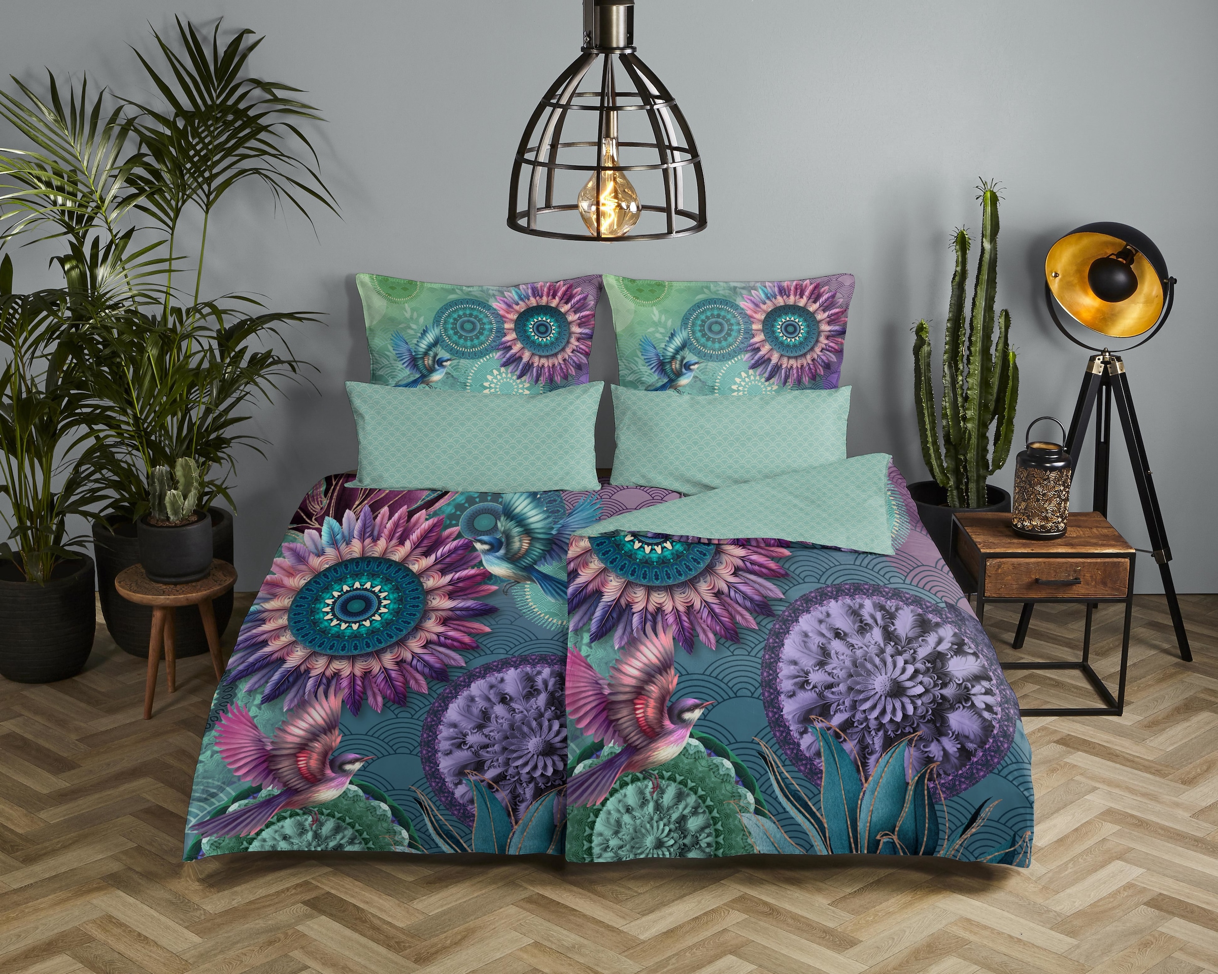 - Wendebettwäsche »Vespera« 2 Satin, Reißverschluss, Wendeoptik, Mandala, Vogel, grünhipAktueller Preisab 59,95 €