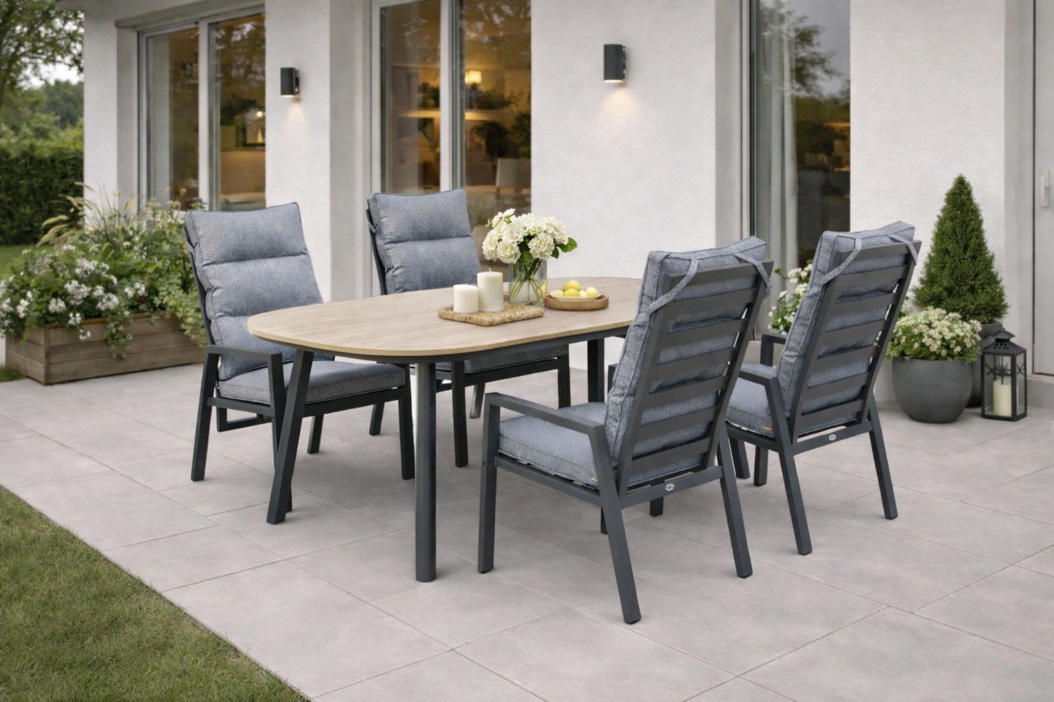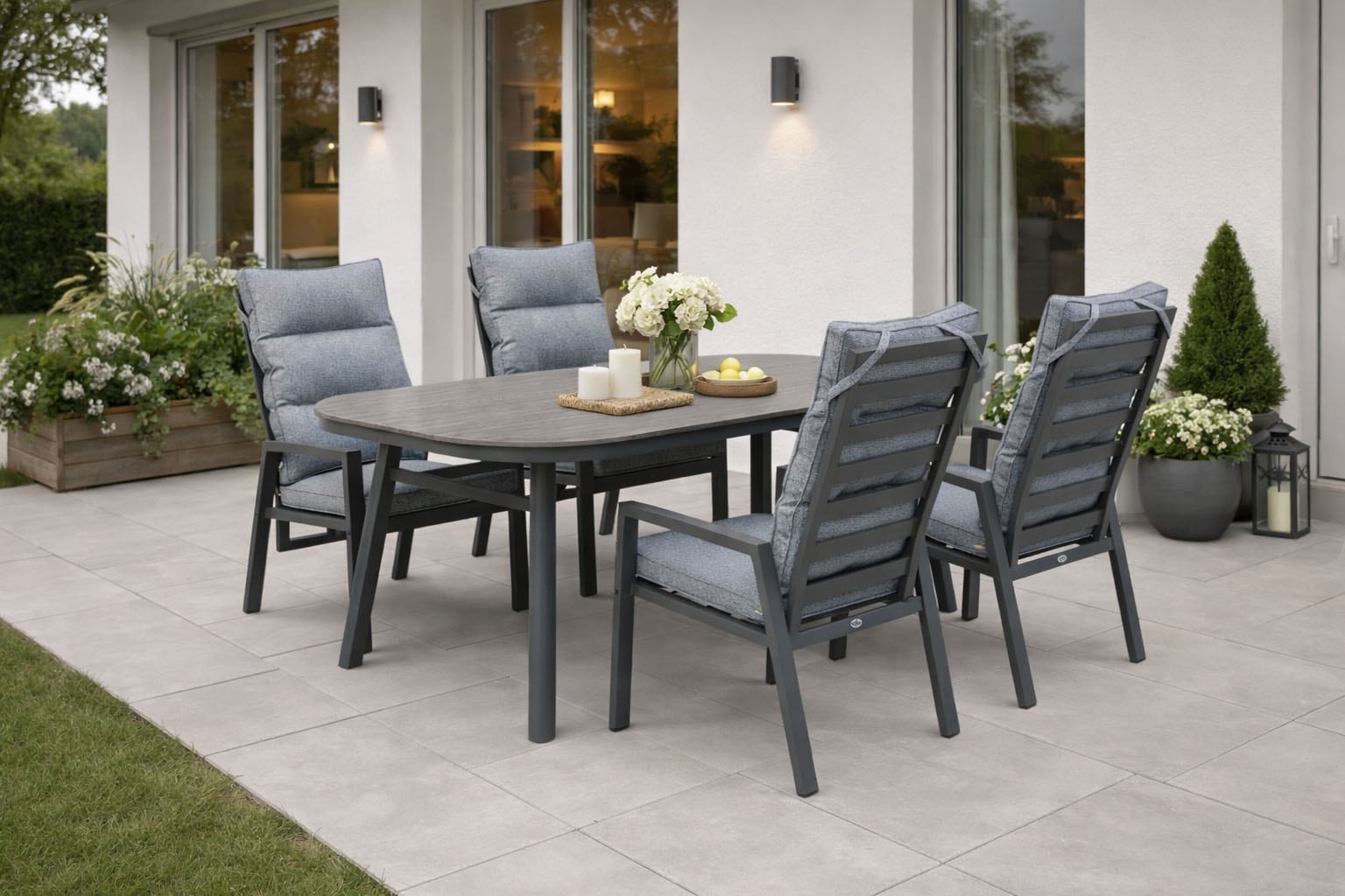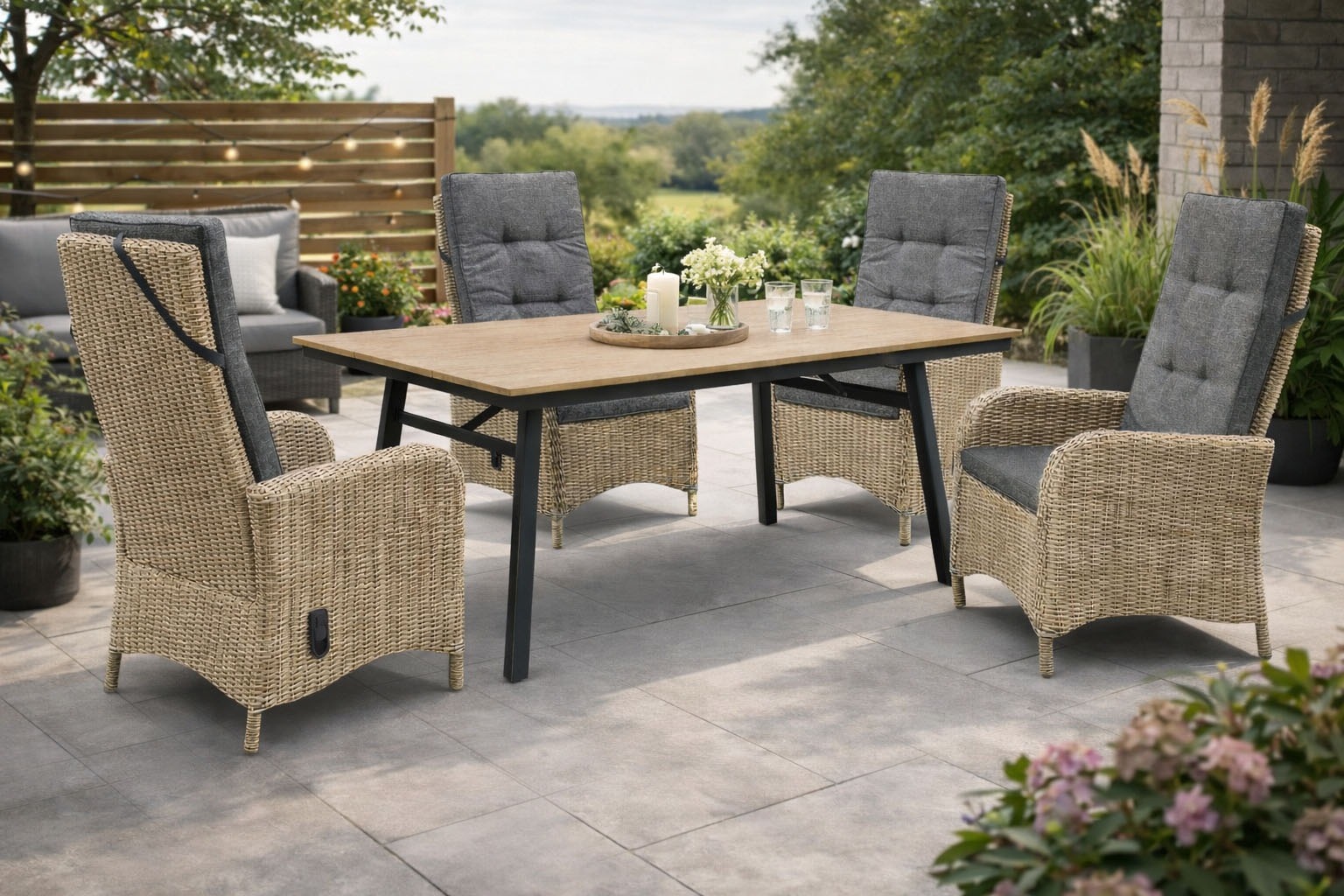 - Garten-Essgruppe »PALMA LUNA« 4x Hochlehner, 1x Tisch, inkl. Auflagen, 9 Stk. tlg....DestinyUrsprünglicher PreisUVP 1.907,00 €Rabatt- 616,36 €Aktueller Preis1.290,64 €