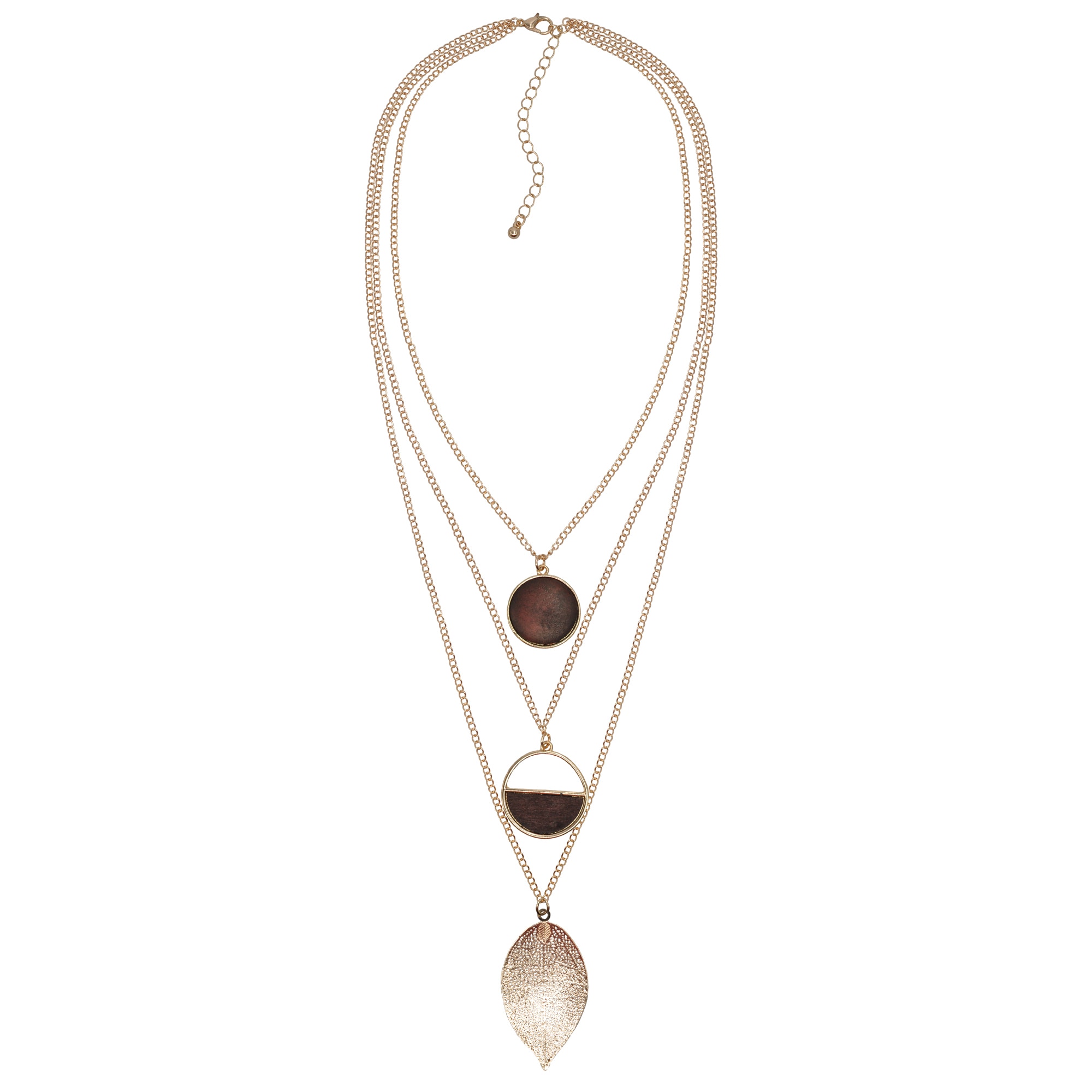 Neu - Kette mit Anhänger »3-reihig Metall Blatt glanz vergoldet Holz braun«SteuerUrsprünglicher PreisUVP 64,90 €Rabatt- 33 %Aktueller Preis42,95 €
