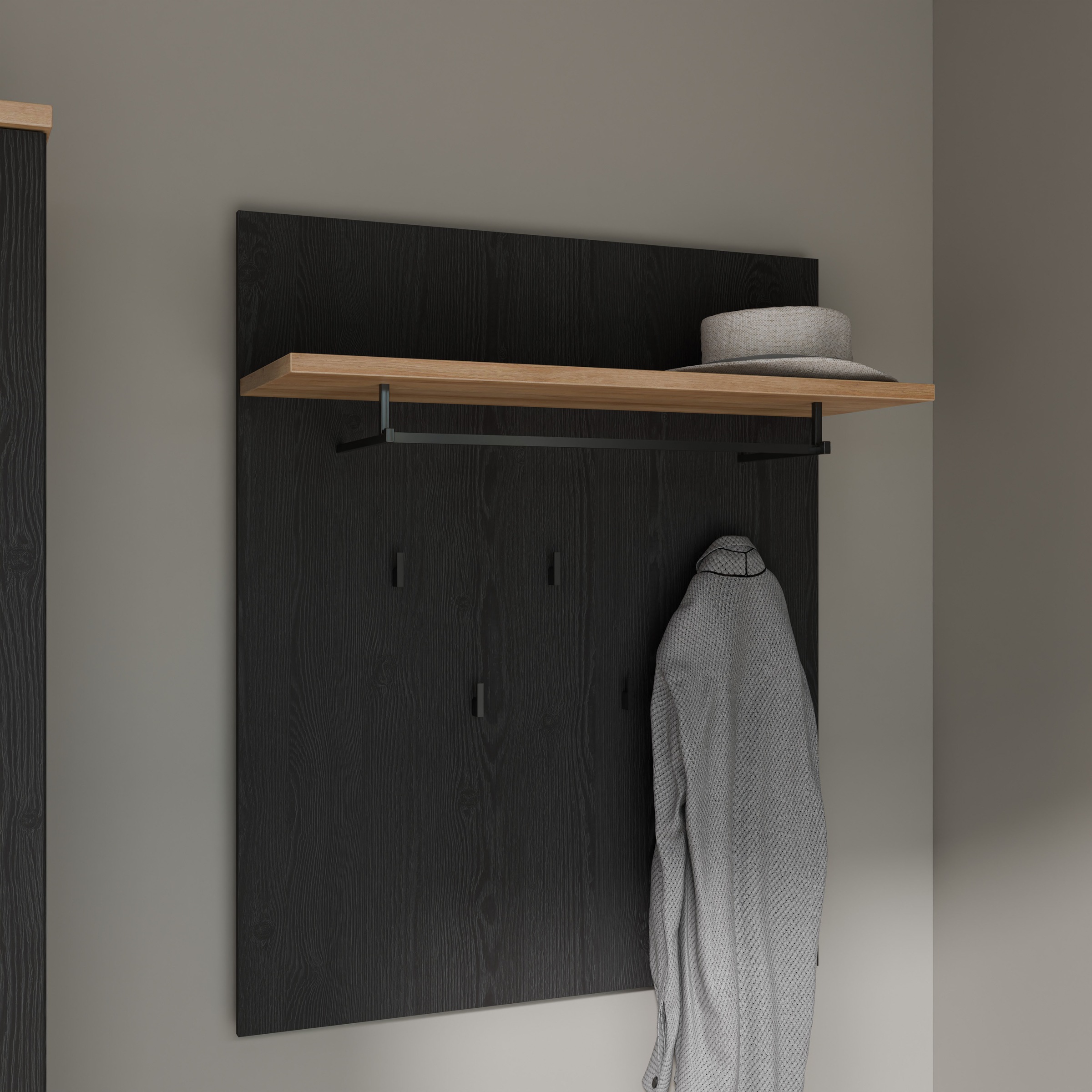+ Farben - Garderobenpaneel »Bohol Paneel 5 Haken, Kleiderstange, Ablageboden« B/H/T 86,5/1056/30 cmFORTEUrsprünglicher PreisUVP 159,00 €Rabatt- 79,00 €Aktueller Preis80,00 €