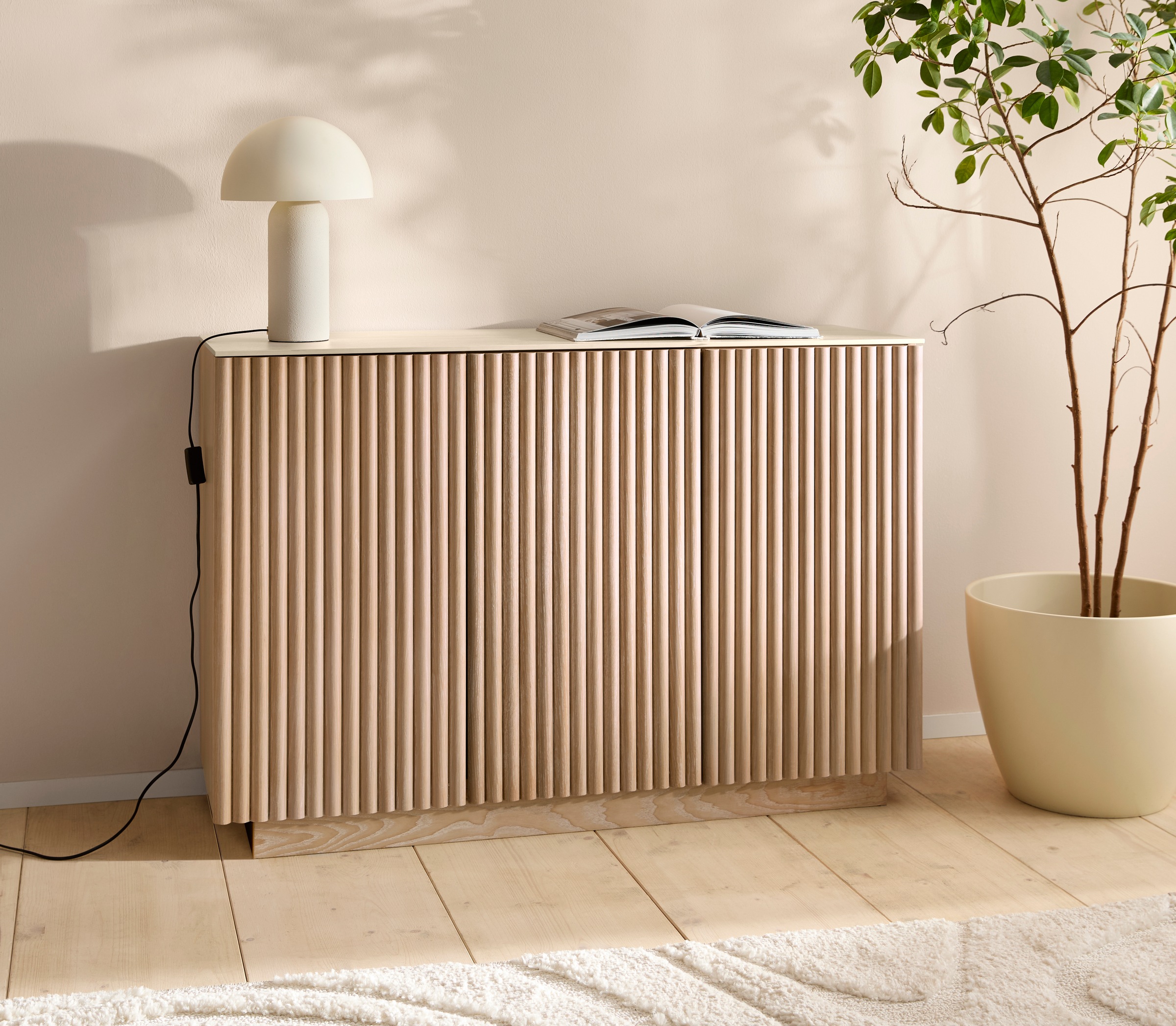 Neu - Sideboard »Solva« Holzoptik aus Esche, geriffelte Front, Keramikplatte, Breite 119 cmhomsy by Ana JohnsonUrsprünglicher PreisUVP 699,99 €Rabatt- 330,00 €Aktueller Preis369,99 €