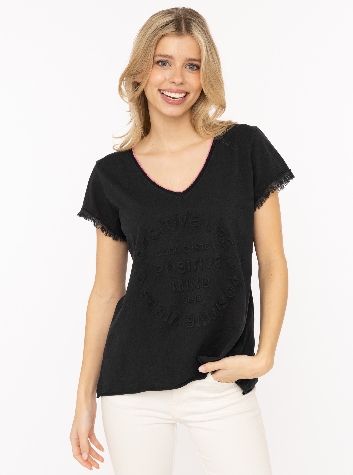 + Farben - Kurzarmshirt »"Positive Mind Neonkante"« ausgefranste Kanten, V-Ausschnitt mit...ZwillingsherzUrsprünglicher PreisUVP 39,99 €Rabatt- 17 %Aktueller Preisab 32,99 €