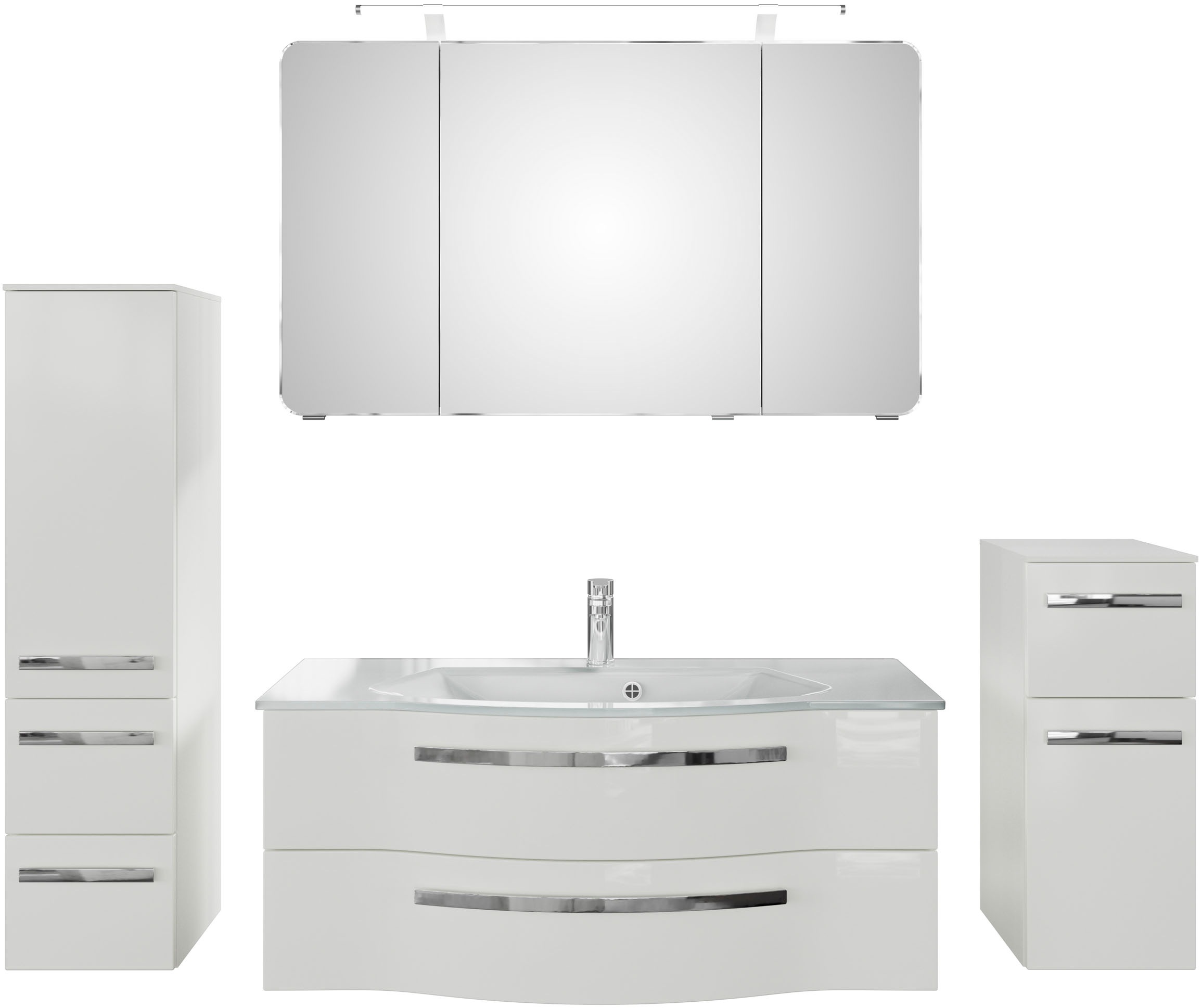 - Badmöbel-Set »Serie 4005, vormontiert, Glaswaschbecken, Spiegelschrank« Set, 6 Stk. tlg.SaphirUrsprünglicher PreisUVP 3.248,00 €Rabatt- 76,56 €Aktueller Preis3.171,44 €