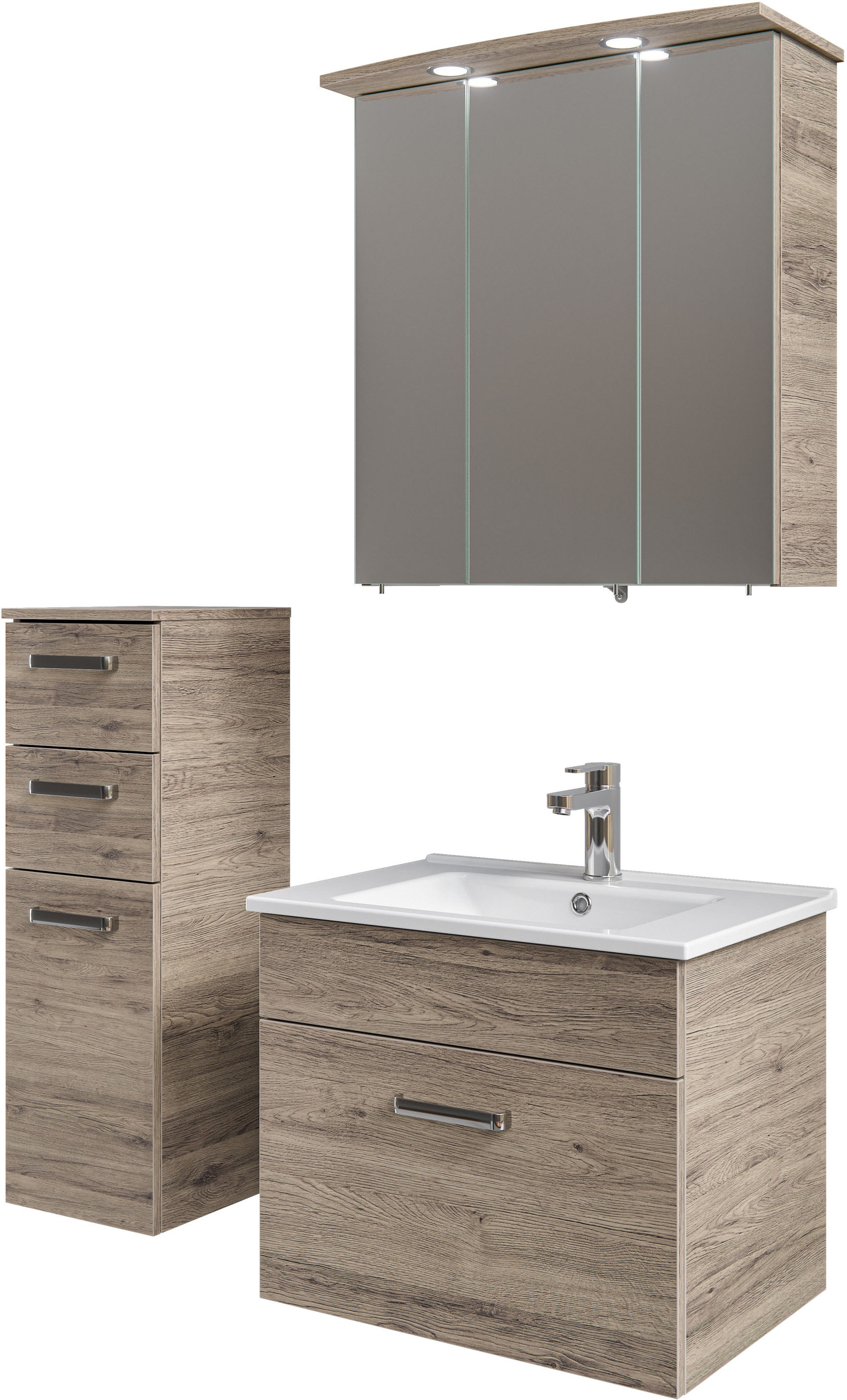 - Badmöbel-Set »4-teilig, mit Spiegelschrank« Set, 4 Stk. tlg.Saphir