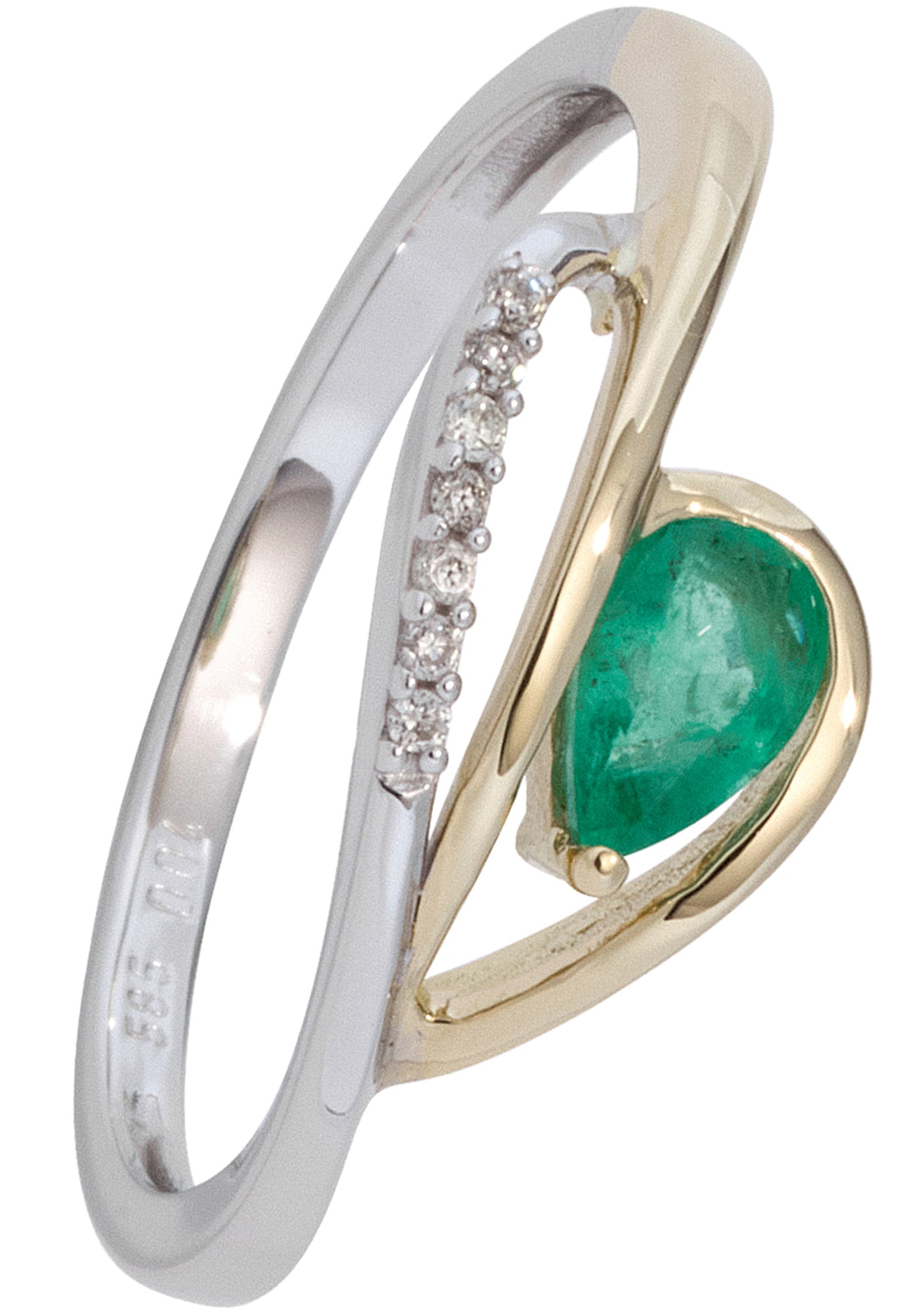- Diamantring 585 Gold bicolor mit 2 Diamanten und SmaragdJOBOAktueller Preis854,40 €