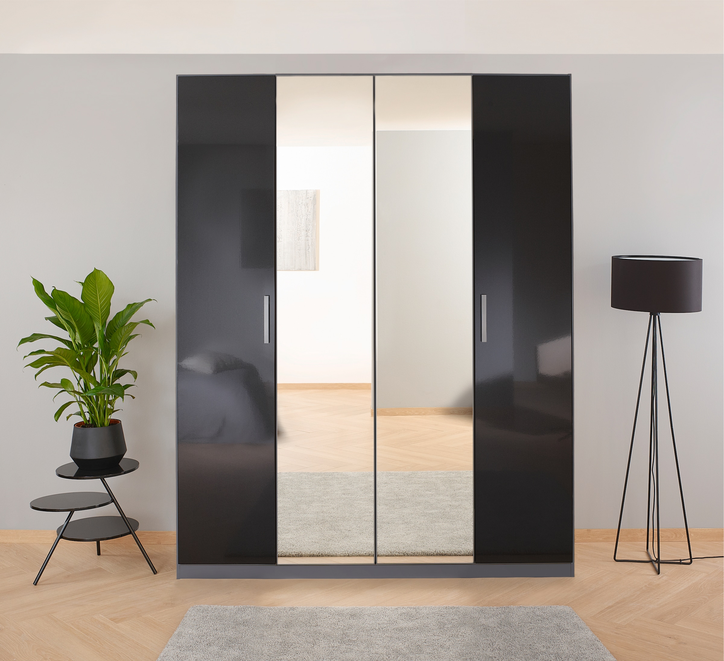 + Farben - Drehtürenschrank »Reflect« mit Spiegelfront, inkl. praktischer InneneinteilungrauchUrsprünglicher PreisUVP 499,00 €Rabatt- 233,21 €Aktueller Preisab 265,79 €