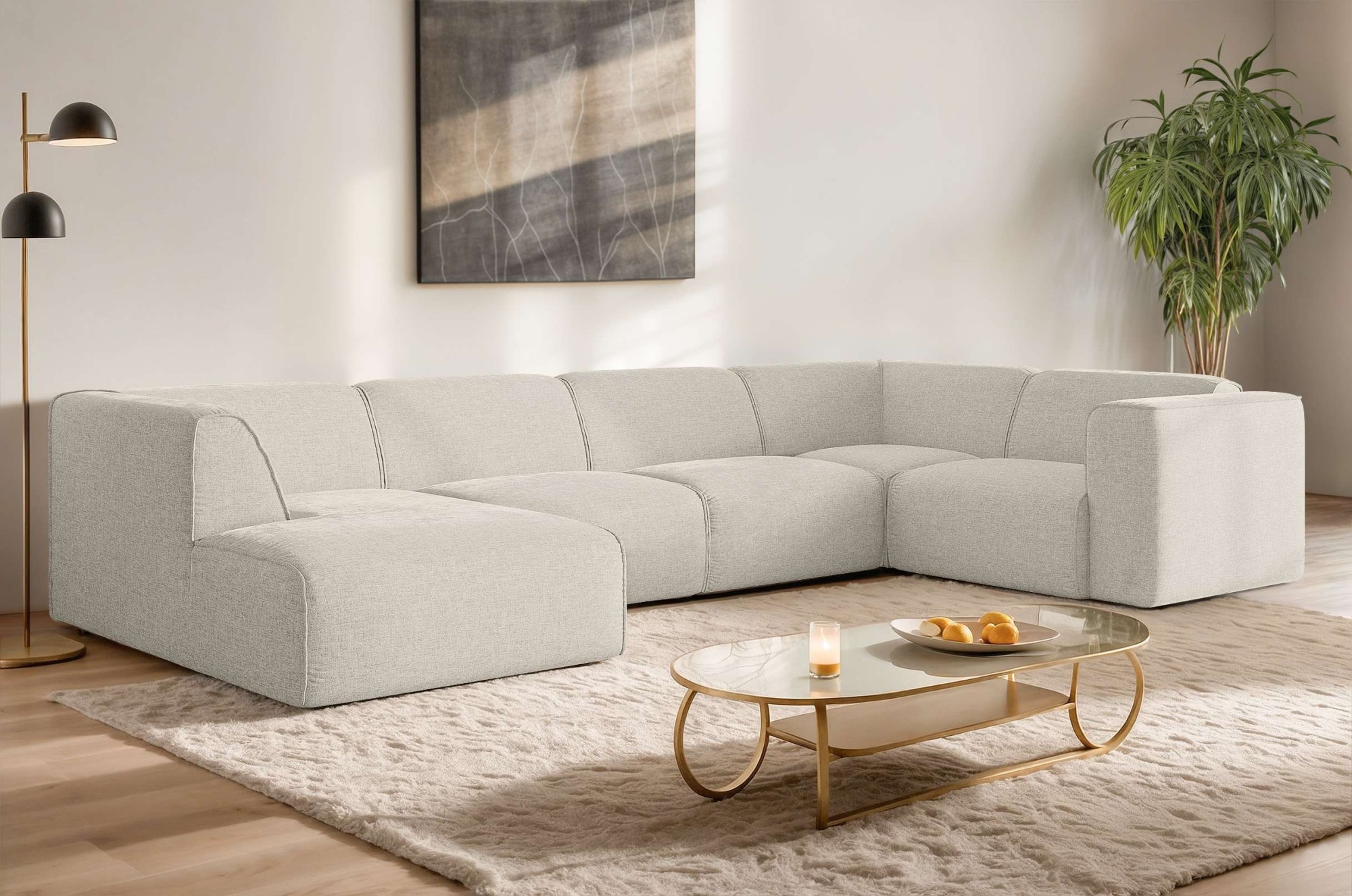 - Moderne Wohnlandschaft bestehend aus 5 Modulen, mit wahlweise bestellbarer rechts- oder linksseitiger Ottomane - in sanft abgerundeter Form und mit extrastarken Nähten