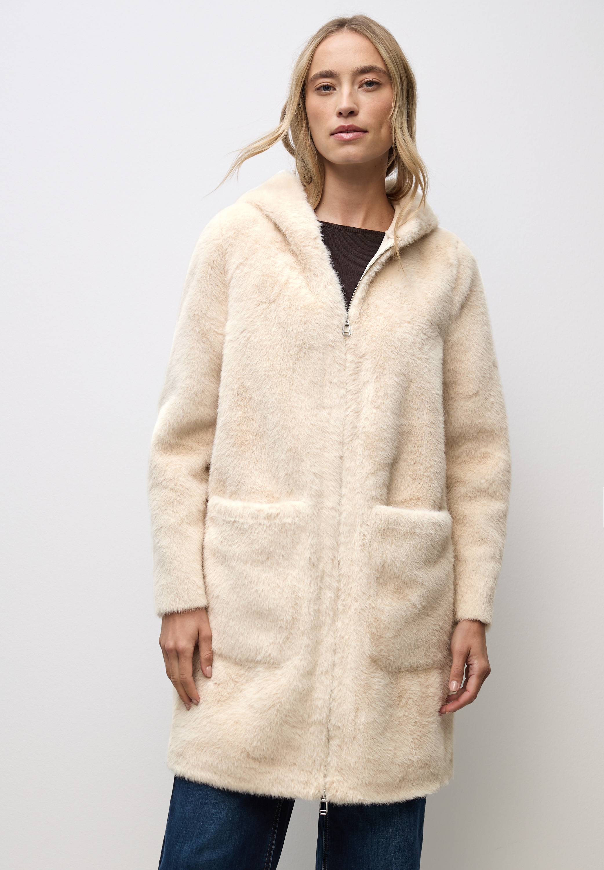 - STREET ONE STUDIOFellimitatmantel mit abnehmbarer Kapuze