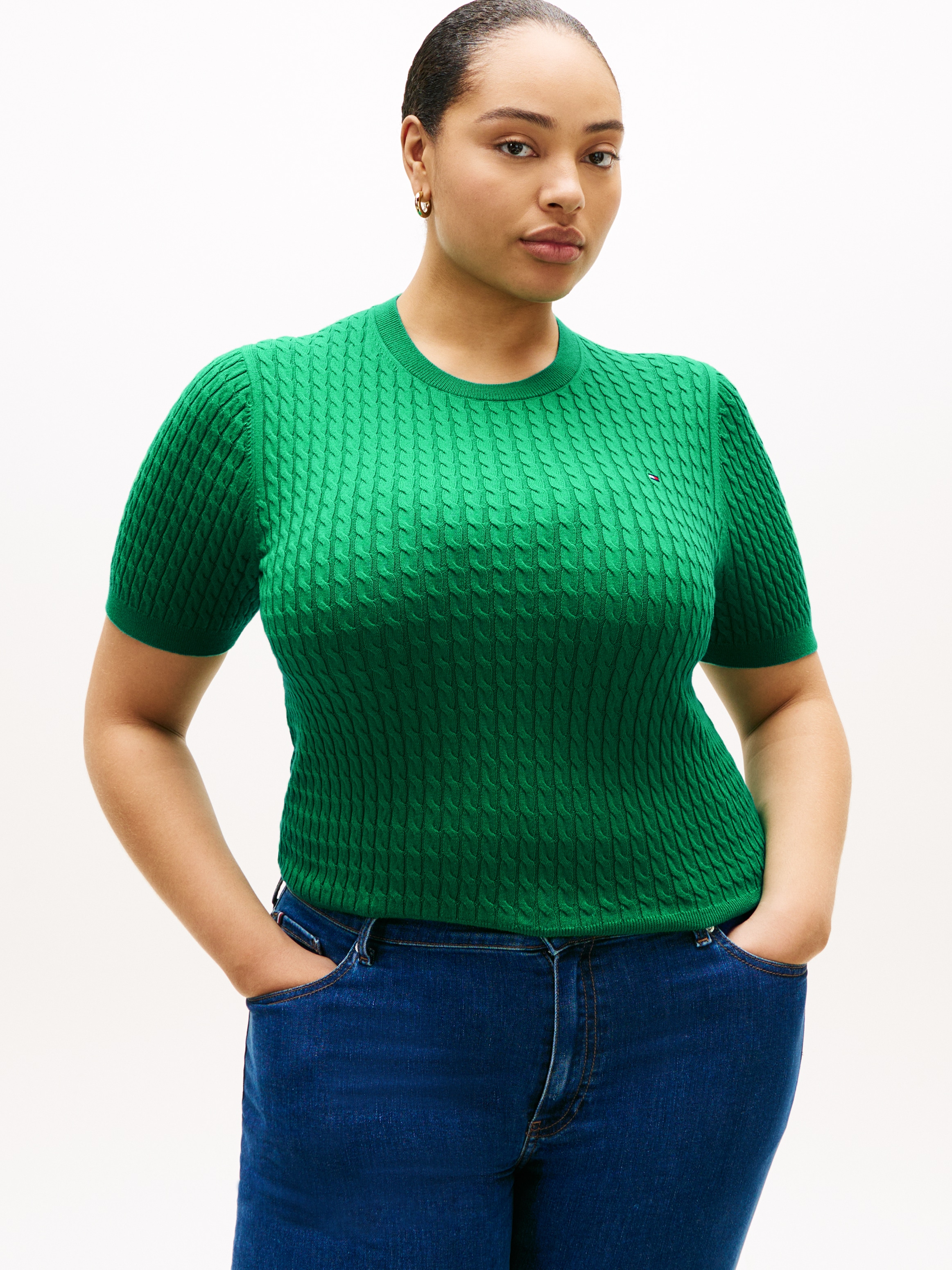 + Farben - Rundhalspullover »CRV CO CABLE FINE GG CNK S/S SWT« in großen Größen, mit ZopfmusterTommy Hilfiger CurveAktueller Preis119,90 €
