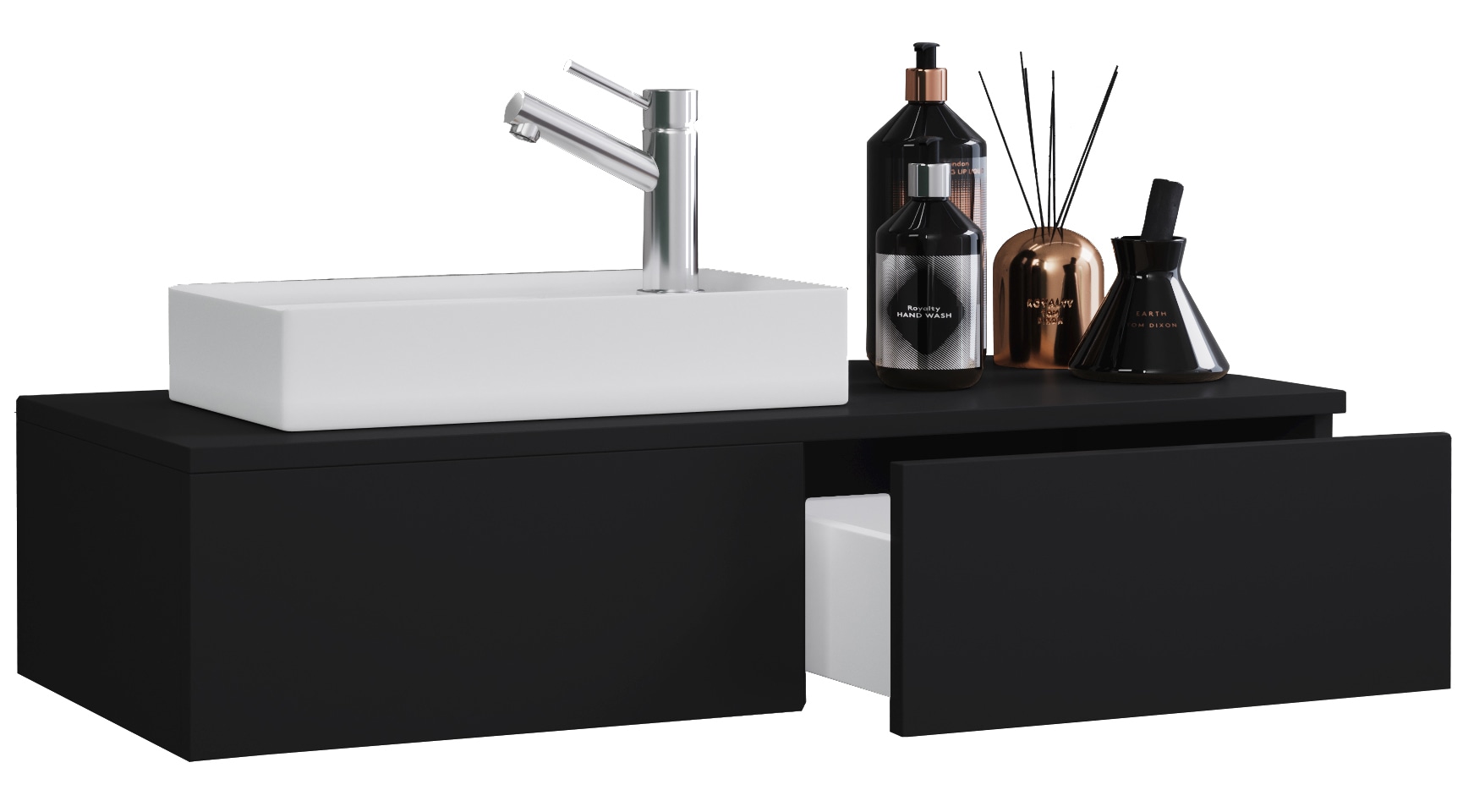 - Waschtisch »Loft« Badmöbel, schwarz, mit Keramikwaschbecken, Breite 60cmwelltimeUrsprünglicher PreisUVP 299,99 €Rabatt- 50,00 €Aktueller Preis249,99 €