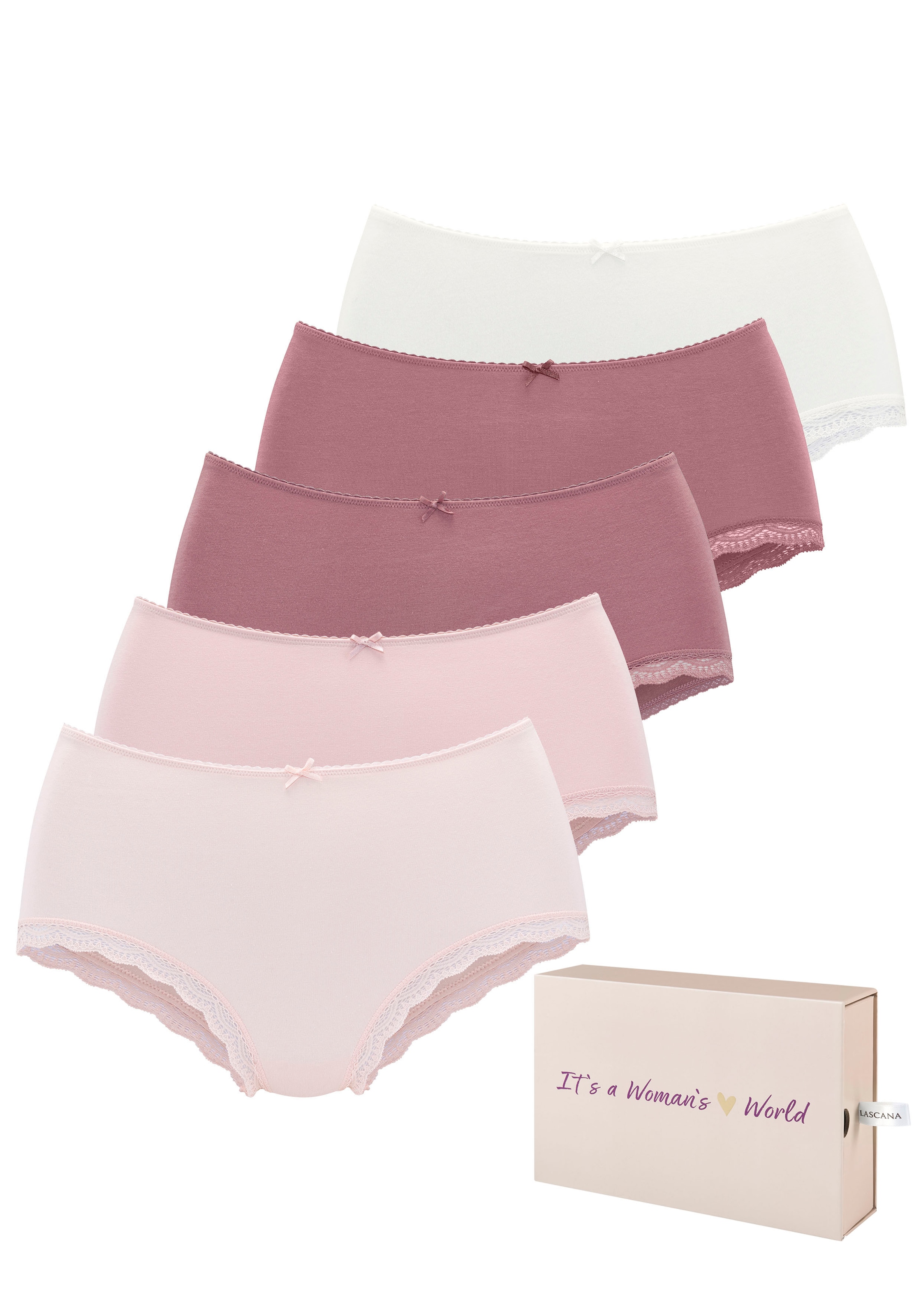 - Taillenslip 5er-Pack, aus elastischer Baumwolle mit zarter Spitze, mit AufbewahrungsboxLASCANAAktueller Preisab 28,99 €