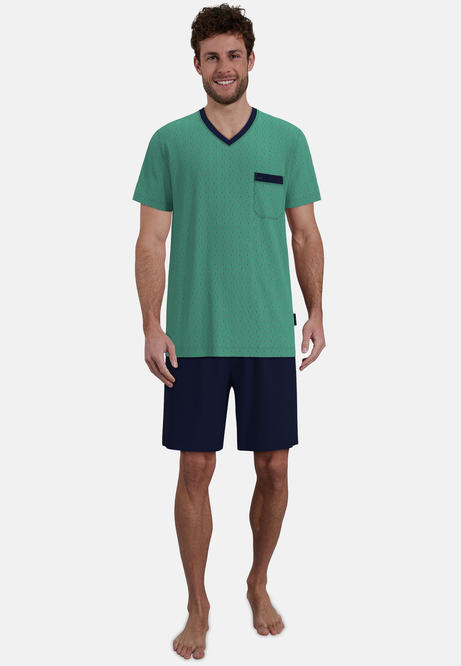 - Shorty »Edingburgh« gemustert, kurz, V-Ausschnitt, mit Brusttasche, BaumwolleGÖTZBURGAktueller Preis39,99 €Grundpreis39,99 €pro1 Stk
